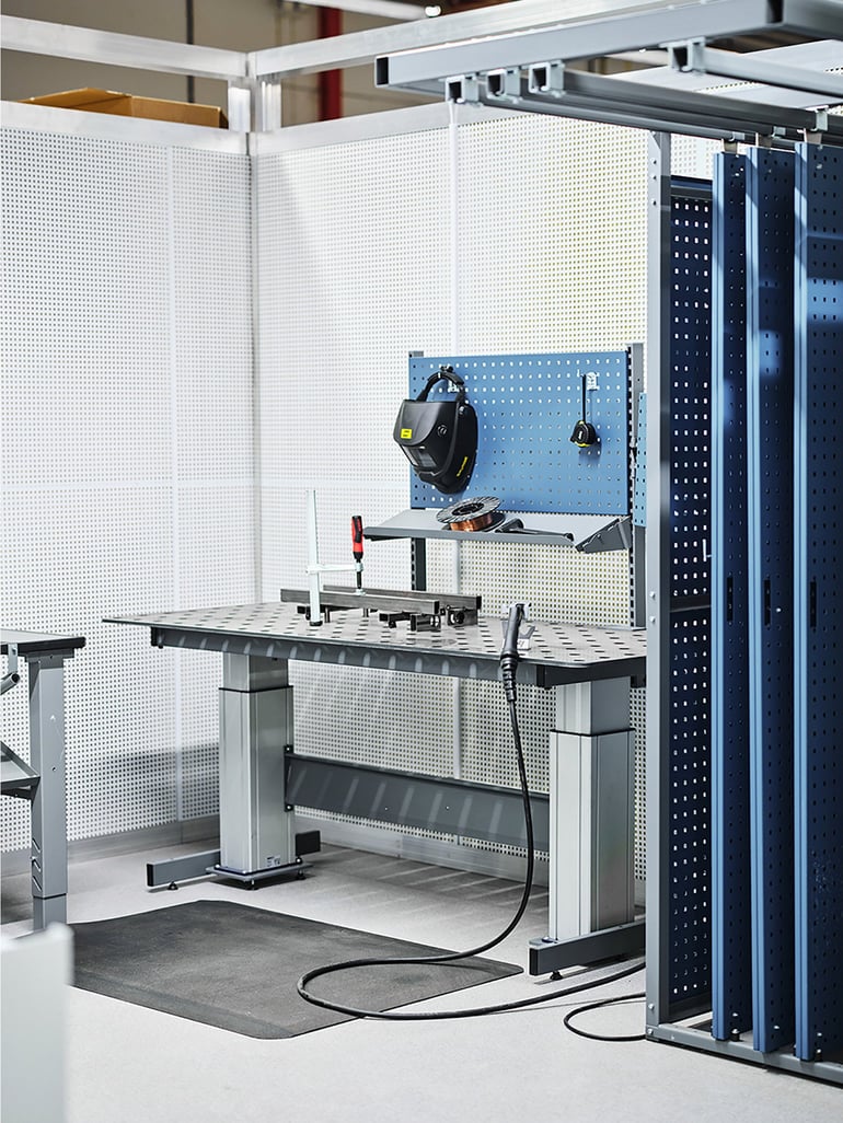 Supplerer du sveisebordet med verktøytavle, hyller og annet praktisk tilbehør, kan du bygge en komplett sveisestasjon der alt du trenger, og alt av materialer, verktøy, klemmer og utstyr, er innen rekkevidde. For å gjøre arbeidsplassen enda mer komplett anbefales også en god sveisematte som gir avlastning, samt sveisegardiner som beskytter både deg og omgivelsene.