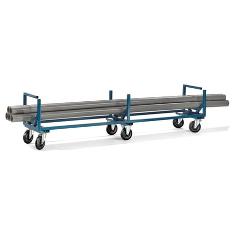 En langgodsvogn brukes til lange varer, den har høy belastningskapasitet og passer godt i tøffe miljøer som lager og produksjon. Disse trallene for langt gods kommer ofte med fire eller seks hjul, og gjør det enkelt å frakte stolper, lister, rør og alt mulig annet langt gods.