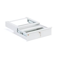 Praktisk og låsbar benkeskap til arbeidsbord i stål som monteres under benkeplaten for ekstra oppbevaringsmuligheter.